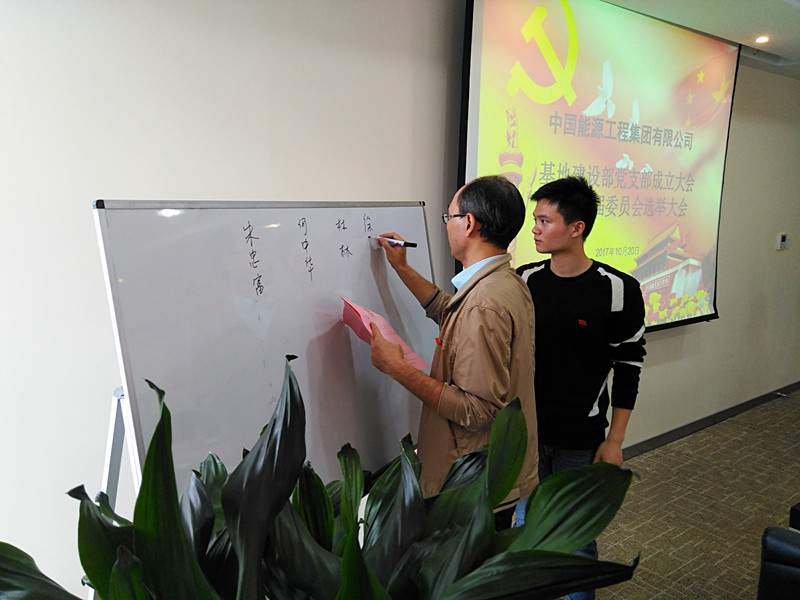 基地建設(shè)部共有9名黨員,隨著業(yè)務(wù)領(lǐng)域不斷擴(kuò)大,部門凝聚了一支老、中、青三代優(yōu)秀的黨員梯隊(duì)。為了使部門黨組織更加完善,激發(fā)黨員在工作中的先鋒模范作用,基地建設(shè)部于今年6月向中國(guó)能源工程集團(tuán)系統(tǒng)黨委提出成立黨支部的申請(qǐng),隨后召開(kāi)黨員大會(huì)確定支委候選人,并于10月20日選舉產(chǎn)生第一屆支部委員會(huì)。